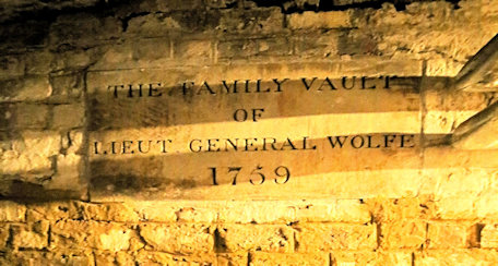 At the back of the church, as already observed, you will find a brass plate in the floor indicating that General Wolfe's sealed vault is in the crypt below.