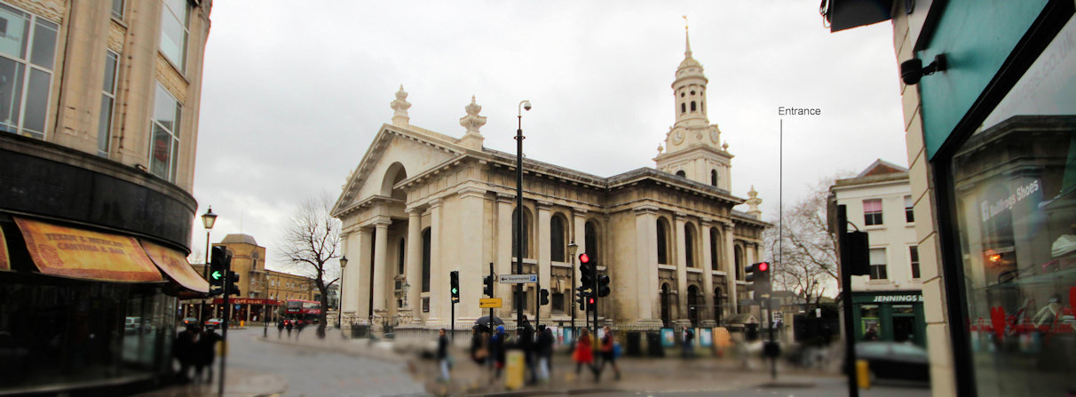 The original entrance is via the steps up to the large doors on the North side, just off Greenwich Church Street, but today you have to go past these doors and round the back to the church yard to find the entrance.