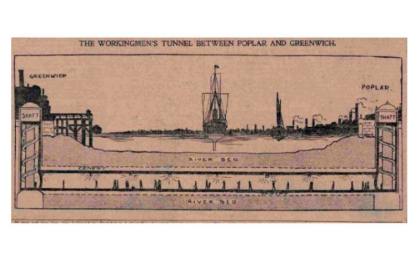 As they completed each section, cast iron linings were bolted into place so that the tunnel became a long sealled pipe sitting under the river bed through which people could walk.