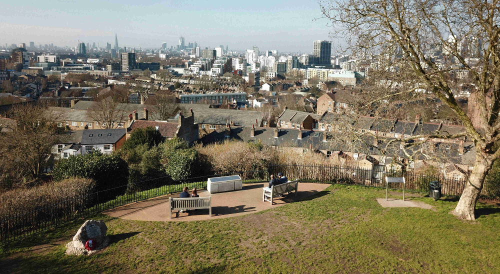 The point offers another impressive view across London this time from the North West edge of Blackheath at the top of Royal Hill.