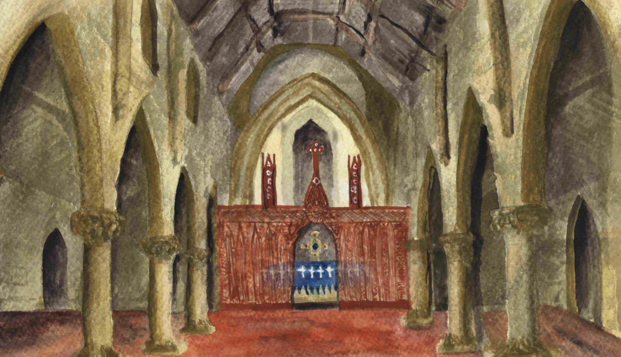 He noted that the north wall of the church was still largely standing, but much of the ruin was buried or covered in vegetation, as by then it was a busy farm.