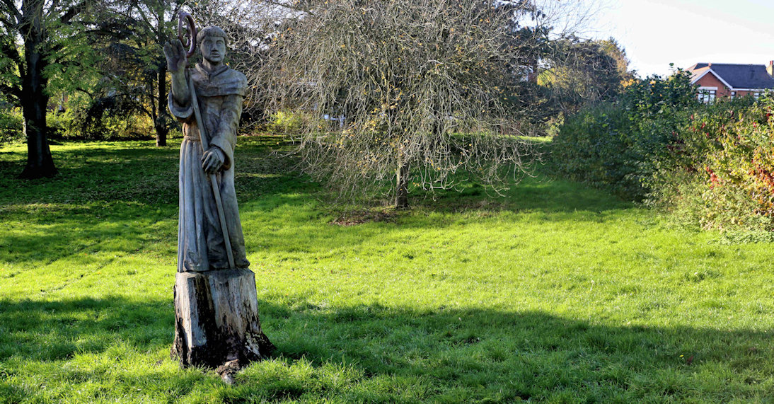 This statue helps to invoke the spirit of the abbey precincts, but is not typical of a Augustine canon.
