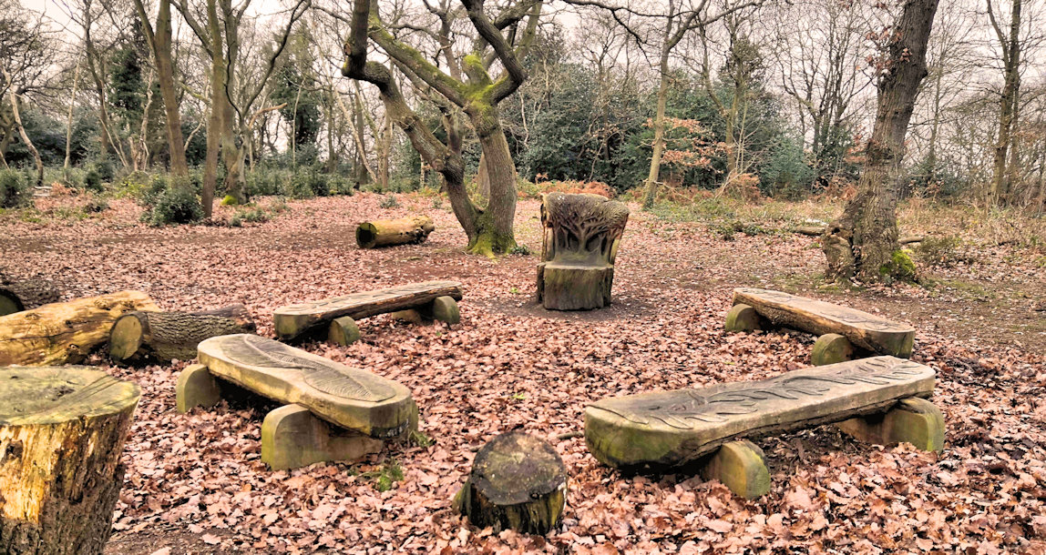 The main seat and benches are all beautifully carved and provide a great spot to learn about the rich environment in the clearing.